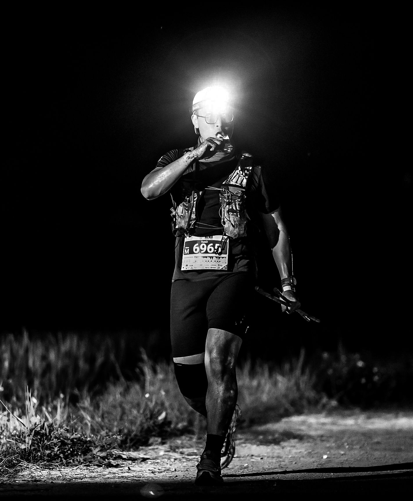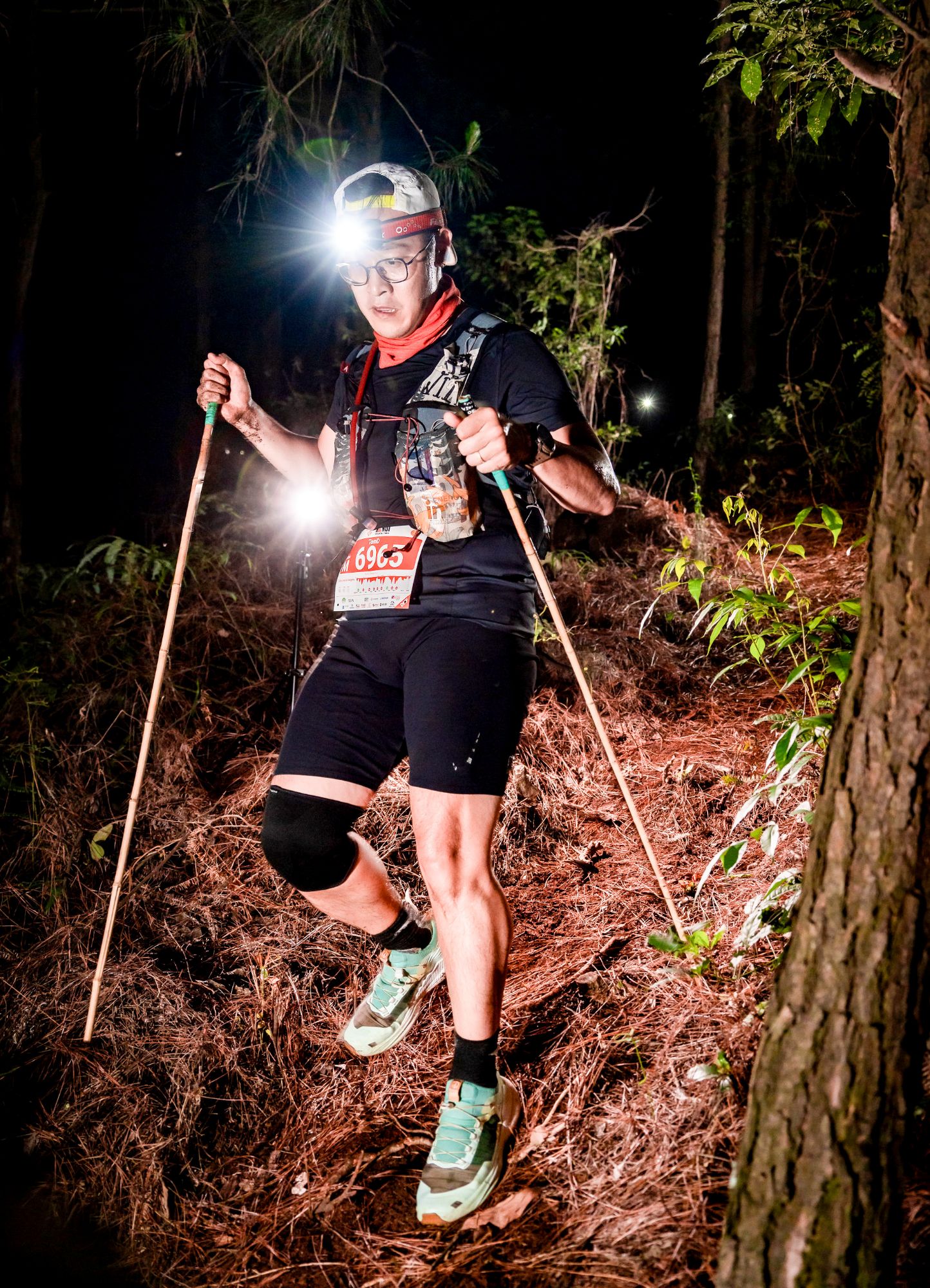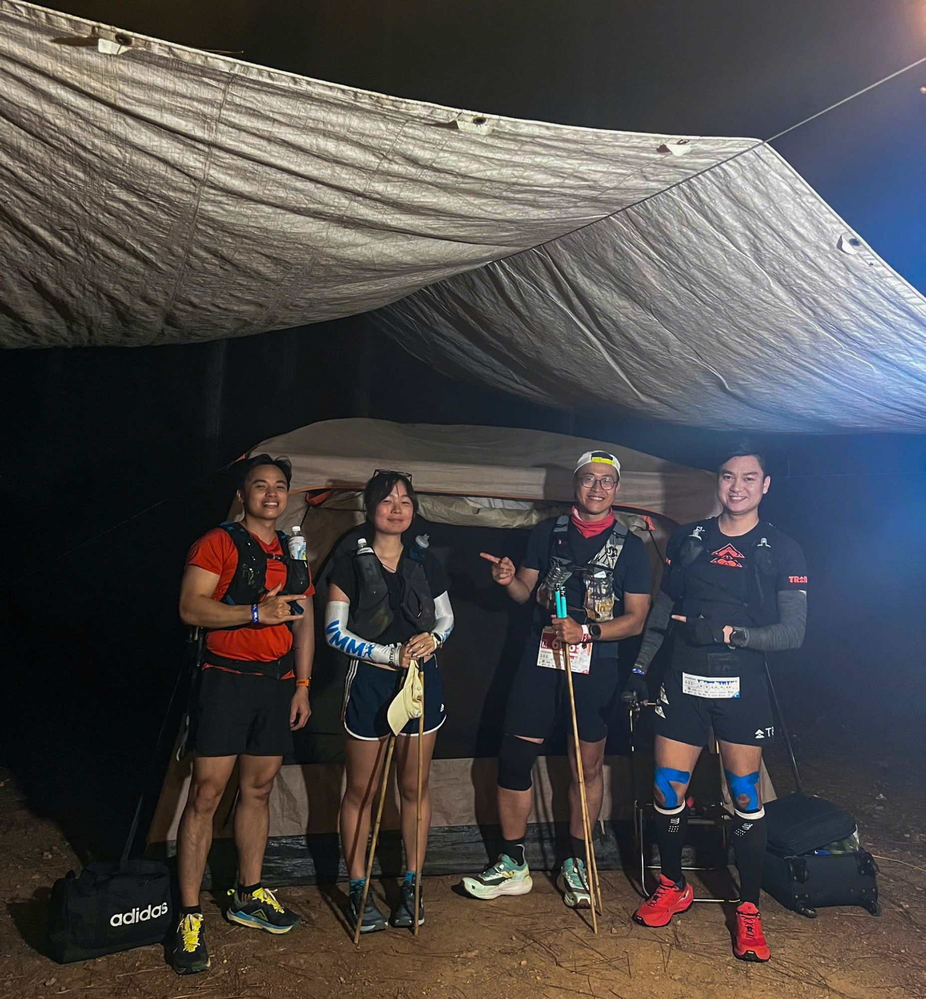 Về chủ quan, tôi đã vào race với một tâm lý…..chủ quan. Thiếu luyện tập đã đành, đằng này race còn diễn ra vào 3am Chủ nhật, trong khi 9:35pm tối thứ 7 tôi vẫn đang ở SG chuẩn bị cất cánh, sau 1 tối thứ 6 tiếp khách và cả ngày thứ 7 họp hành căng thẳng. Tôi tới Trang Thiều camping lúc 0h sáng Chủ nhật, hoàn thành lấy bib lúc 1:30am (còn chạy đi chạy lại leo vài con dốc để lấy đủ đồ), rồi quấn gậy và sắp vest tới 2:30am – đúng giờ tập trung để chuẩn bị xuất phát.
